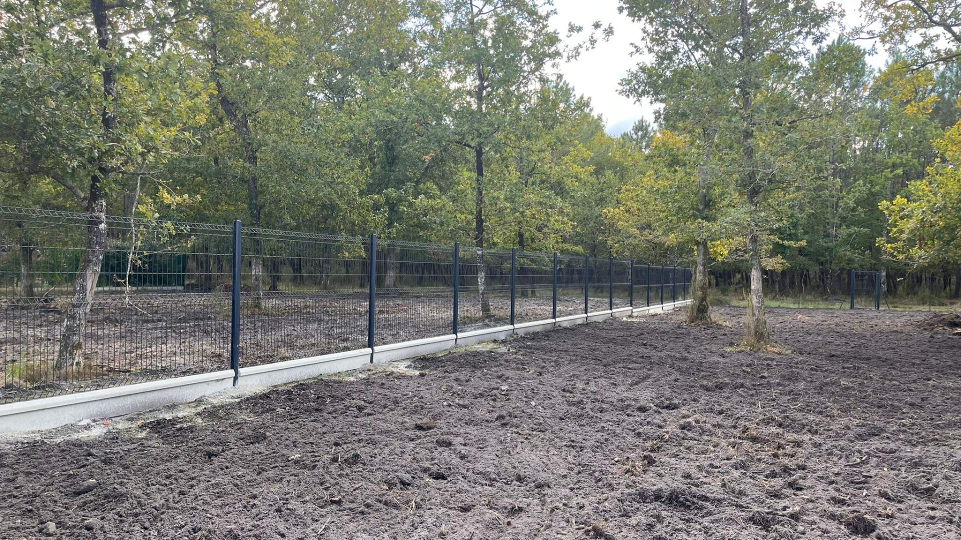 - Clôture : pose de grillages en panneaux rigides avec sous-bassement 0.25m en façade et côtés, pose d'une clôture en grillage souple au fond du jardin;